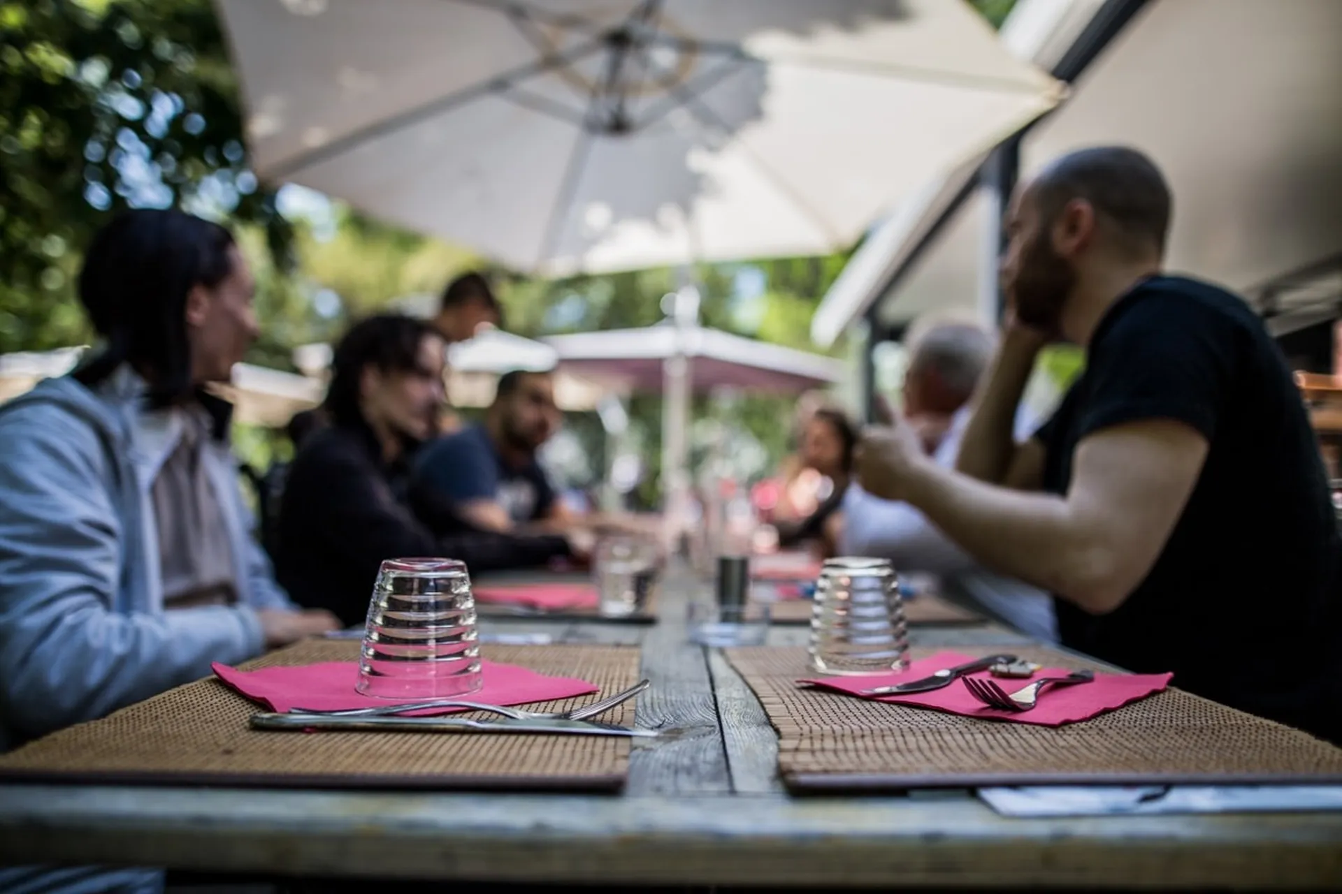 Les espaces disponibles offrent plusieurs possibilités selon la taille du groupe. La salle intérieure permet de recevoir des tables importantes dans un cadre structuré, tandis que la terrasse extérieure apporte une dimension plus ouverte et détendue. Cette complémentarité permet d’adapter l’organisation du repas selon l’ambiance recherchée, que ce soit pour un déjeuner d’entreprise, un anniversaire ou un repas entre amis.